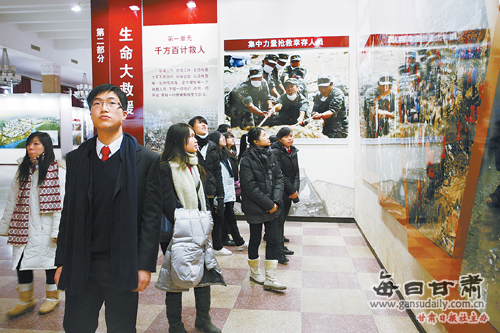 中廣網(wǎng)蘭州12月28日消息 12月24日,中國人民革命軍事博物館內(nèi)人如潮涌!帮L(fēng)雨同舟,舟曲不屈,加油!”在參觀完“風(fēng)雨同舟,舟曲不屈——甘肅舟曲特大山洪泥石流災(zāi)害搶險(xiǎn)救援主題展覽”后,來自香港的170名中學(xué)生在展館里高聲呼喚,為舟曲加油。