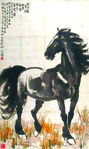 徐悲鴻被譽(yù)為 “天下畫馬第一人”,有評(píng)論認(rèn)為,最能代表和體現(xiàn)徐悲鴻藝術(shù)水平、最能反映他的個(gè)性、也最能表達(dá)他思想感情的,莫過于他對(duì)馬的描繪。