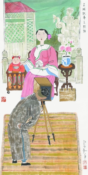 古城故事之照相(國畫)