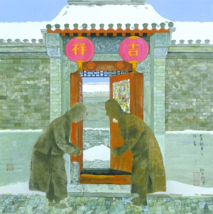 古城故事之拜年(國畫)