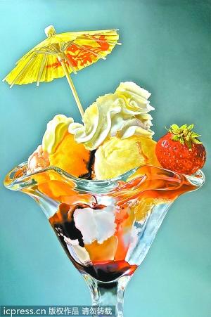 這些驚人的照片讓人垂涎欲滴,你會以為是照片,但實(shí)際上它們是荷蘭藝術(shù)大師Tjalf Sparnaays的油畫作品。他的作品里包括薯片、漢堡、甜點(diǎn)等各種美味,比寫實(shí)風(fēng)格的畫還真實(shí)。