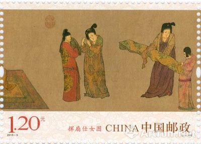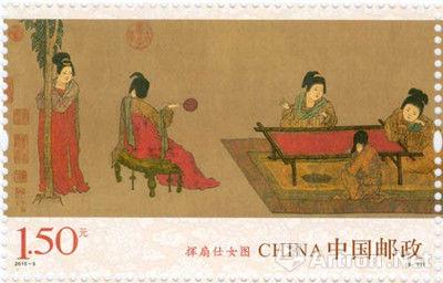 中國郵政定于2015年3月22日發(fā)行《揮扇仕女圖》特種郵票一套3枚,小型張1枚。全套郵票面值為9.90元。
