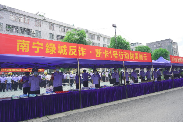 “南寧綠城反詐·斷卡1號(hào)”行動(dòng)成果展示現(xiàn)場(chǎng) (央廣網(wǎng)發(fā) 何俊儒攝)