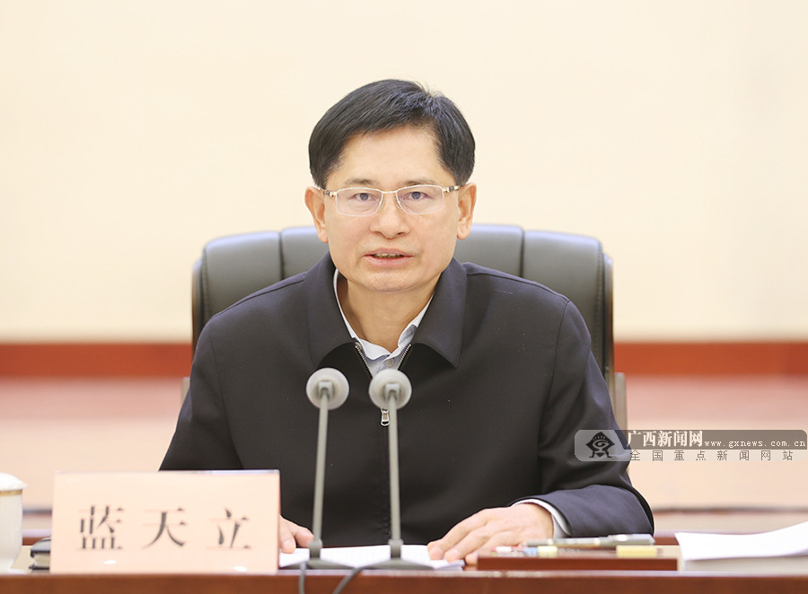 藍(lán)天立要求,要進(jìn)一步提高政治站位、深化思想認(rèn)識(shí),把學(xué)習(xí)貫徹習(xí)近平總書記重要講話精神,與學(xué)習(xí)習(xí)近平新時(shí)代中國特色社會(huì)主義思想結(jié)合起來,與貫徹落實(shí)黨的十九屆五中全會(huì)精神結(jié)合起來,與貫徹落實(shí)總書記對(duì)廣西工作的重要指示精神結(jié)合起來,與貫徹落實(shí)自治區(qū)黨委十一屆九次全會(huì)精神結(jié)合起來,在學(xué)懂弄通做實(shí)上下真功夫、實(shí)功夫,切實(shí)把學(xué)習(xí)成效轉(zhuǎn)化為準(zhǔn)確把握新發(fā)展階段、搶抓用好新發(fā)展機(jī)遇、深入貫徹新發(fā)展理念、積極融入新發(fā)展格局的強(qiáng)大動(dòng)力,奮力推動(dòng)中央和自治區(qū)黨委各項(xiàng)決策部署不折不扣落地落實(shí)。