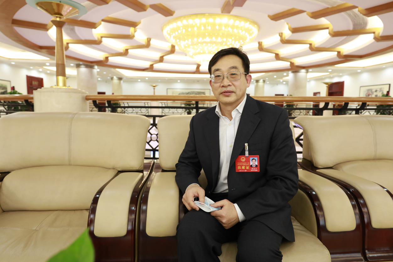 廣西人大代表、廣西壯族自治區(qū)外事辦公室東盟處處長(zhǎng)閉建豐接受媒體采訪 攝影 吳塞逸