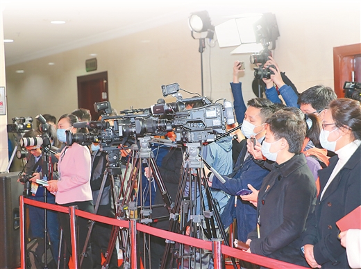 媒體聚焦自治區(qū)政協(xié)十二屆四次會(huì)議。 本報(bào)記者 徐天保 何學(xué)俏/攝