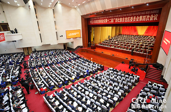 國(guó)際在線廣西頻道消息:1月20日9時(shí),中國(guó)人民政治協(xié)商會(huì)議第十二屆廣西壯族自治區(qū)委員會(huì)第四次會(huì)議在莊嚴(yán)的國(guó)歌聲中開(kāi)幕。大會(huì)于1月20日至24日在南寧召開(kāi),會(huì)期4天半。大會(huì)審議通過(guò)了政協(xié)第十二屆廣西壯族自治區(qū)委員會(huì)第四次會(huì)議議程等。(文 何寧)
