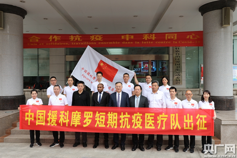 中國援科摩羅短期抗疫醫(yī)療隊由國家衛(wèi)生健康委組建、廣西壯族自治區(qū)選派,共12人,分別來自廣西壯族自治區(qū)衛(wèi)生健康委、自治區(qū)人民醫(yī)院、自治區(qū)南溪山醫(yī)院、自治區(qū)疾控中心、廣西中醫(yī)藥大學第一附屬醫(yī)院,涵蓋外事管理、重癥醫(yī)學、呼吸、公共衛(wèi)生、實驗室檢測、院內感染防控、中醫(yī)、護理、器械維修等領域。
