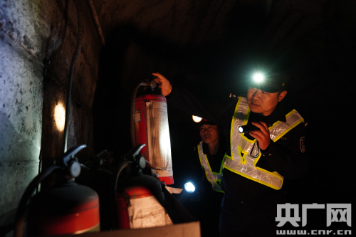 李彬在隧道內(nèi)檢查消防器材(羅盛 攝)