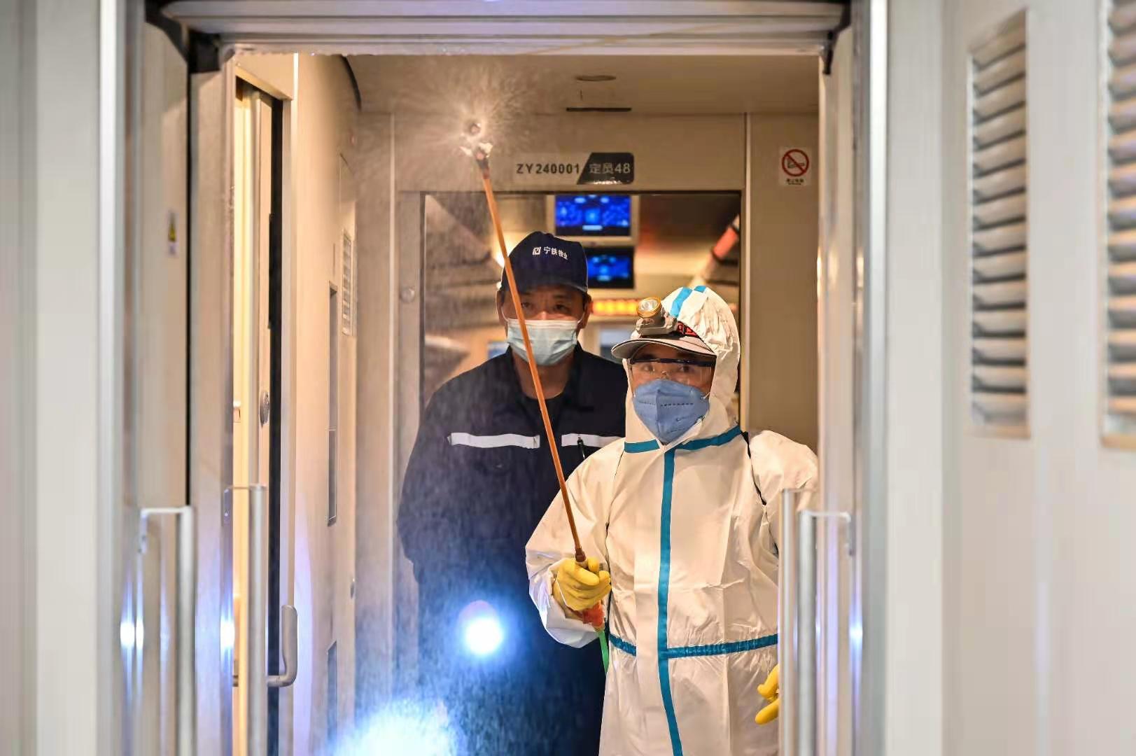 同樣的事情,一晚上重復無數(shù)次。2日凌晨5時25分,完成列車消毒工作的宋雪元摘下口罩,深深吸了一口新鮮空氣。“不是吹牛喲,從疫情開始到現(xiàn)在,我已經(jīng)為動車消毒有一年時間了。現(xiàn)在就是閉著眼,也能噴對地方,保證不留死角,算是熟能生巧了! 宋雪元笑道。