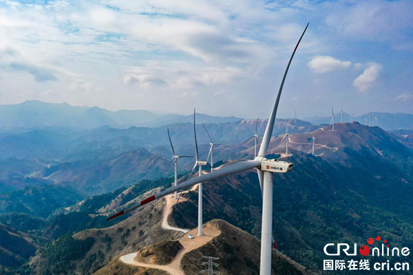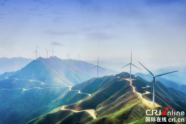 國際在線廣西頻道消息:在中國大唐馬王風力發(fā)電場,百米高的風電機佇立在馬王山的山頂,排列錯落有致。蜿蜒的山路把每個風電機連接起來,在航拍視角下,整個風電場宛如一條中國龍盤踞在馬王山,顯得雄偉壯觀。