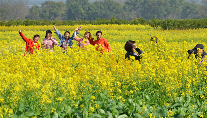 到油菜花田踏春的游客(央廣網(wǎng)發(fā) 呂建偉攝)