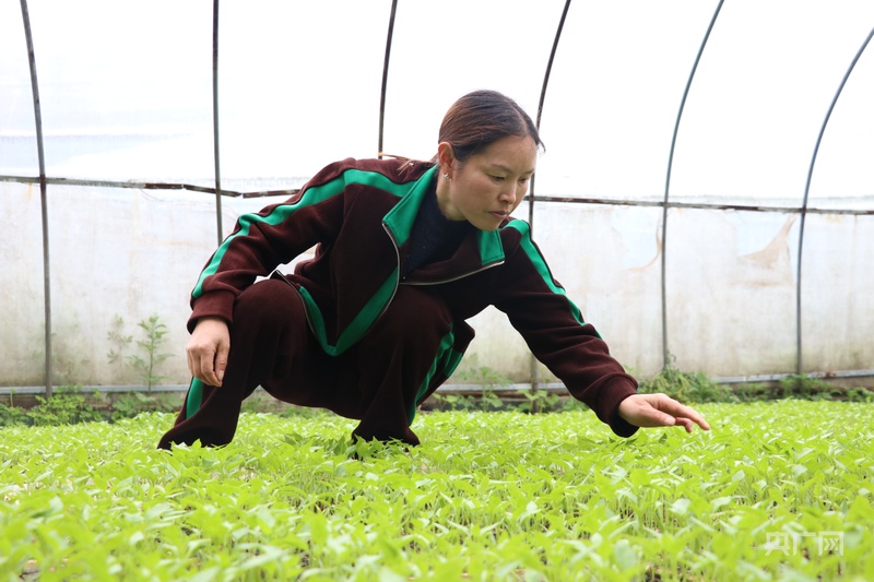 七星關(guān)區(qū)林口鎮(zhèn)大寨村育苗大棚內(nèi),工人正在查看長勢(央廣網(wǎng)發(fā) 邱雪 攝)