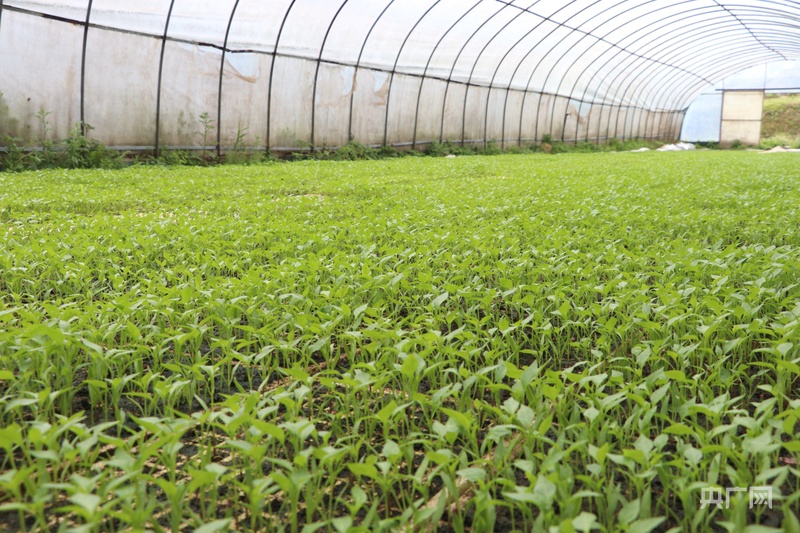七星關(guān)區(qū)林口鎮(zhèn)大寨村育苗大棚內(nèi),辣椒苗長勢喜人(央廣網(wǎng)發(fā) 邱雪 攝)