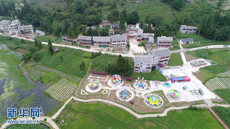 7月2日拍攝的貴州省大方縣羊場鎮(zhèn)隴公村的兒童游樂場和民居。近年來,貴州省大方縣羊場鎮(zhèn)隴公村依托境內(nèi)的喀斯特地貌景觀——清虛洞景觀發(fā)展旅游業(yè),清虛洞逐漸成為遠(yuǎn)近聞名的旅游景點(diǎn)。新華社記者 楊楹攝 -