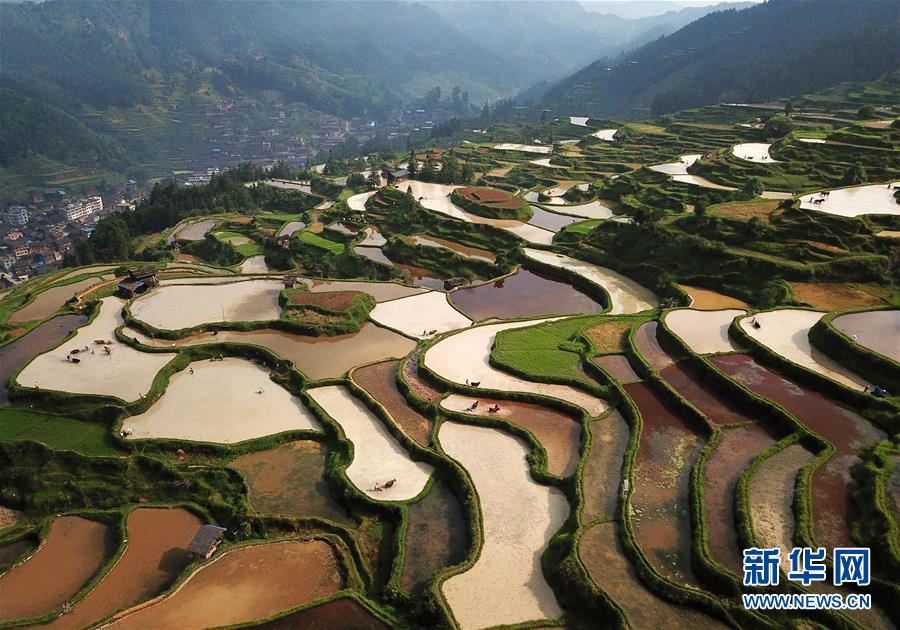 這是5月20日在貴州省黎平縣尚重鎮(zhèn)洋洞村拍攝的梯田(無(wú)人機(jī)拍攝)。 當(dāng)日,在貴州省黔東南苗族侗族自治州黎平縣尚重鎮(zhèn)洋洞村,當(dāng)?shù)剞r(nóng)民牽著近千頭耕牛走進(jìn)田間參加傳統(tǒng)農(nóng)耕活動(dòng),迎接即將到來(lái)的“小滿(mǎn)”節(jié)氣。洋洞村農(nóng)耕文化保存完好,村民至今仍然保持著“日出而作,日落而息”的傳統(tǒng)農(nóng)耕習(xí)慣。 新華社發(fā)(楊文斌 攝) -