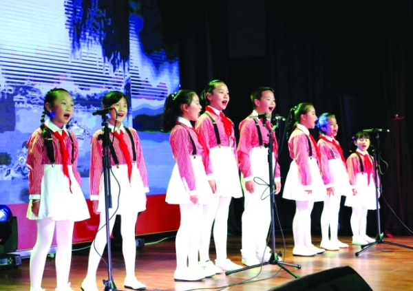 圖為小學(xué)生合唱《讓我們蕩起雙槳》。