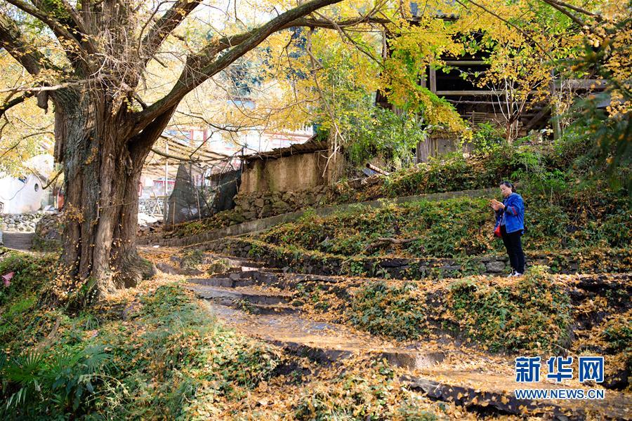 11月15日,游客在黃連村內(nèi)觀賞銀杏樹。