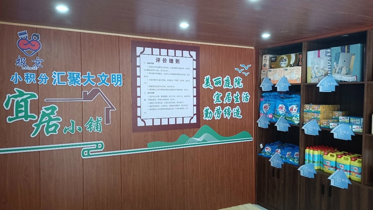 推行積分制管理,將文明行為量化為積分指標(biāo),村民可憑積分在“宜居小鋪”兌換生活用品,推動群眾從“要我文明”向“我要文明”轉(zhuǎn)變。