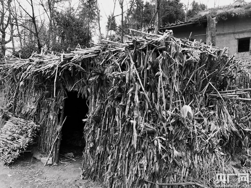 記者第一次認(rèn)識哈沖苗寨,是通過黔西縣本地農(nóng)民攝影家史開心的一組圖片。照片中一個穿著暗紫色苗服、干瘦的老爺子,正在懸崖邊上護(hù)送一群孩子上學(xué)。照片是在艷陽天拍的,孩子們穿著鮮艷的衣服,尤其女生還穿上了苗族的裙子,沖擊力很大。到哈沖苗寨采訪當(dāng)天,當(dāng)?shù)叵铝颂貏e大的雨,記者爬山的時候雨一直不斷,腳下特別滑,一路摔跤。寨子里大多數(shù)是茅草房,各家的房屋離得特別遠(yuǎn),為了防雨,窗戶遮著塑料布,屋里昏暗。哈沖苗寨是貴州眾多“一方水土難養(yǎng)活一方人”的地方之一。
