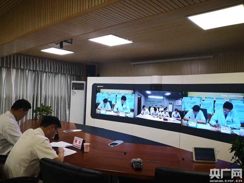 貴州省人民醫(yī)院和六盤水第二人民醫(yī)院正在進(jìn)行遠(yuǎn)程醫(yī)療會診(央廣網(wǎng)發(fā) 佟文玲攝)