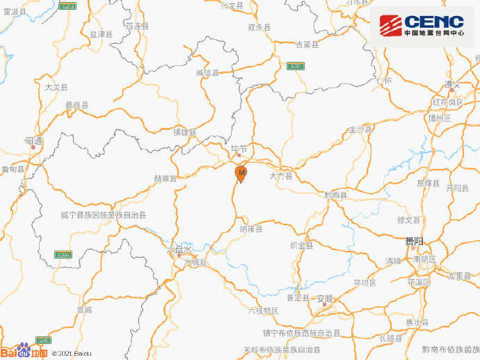 震中距七星關區(qū)20公里、距大方縣30公里、距納雍縣39公里、距云南鎮(zhèn)雄縣56公里、距赫章縣58公里,距畢節(jié)市20公里,距貴陽市150公里。