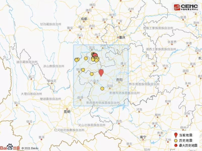 根據(jù)中國地震臺網(wǎng)速報目錄,震中周邊200公里內(nèi)近5年來發(fā)生3級以上地震共195次,最大地震是2019年6月17日在四川宜賓市長寧縣發(fā)生的6.0級地震(距離本次震中142公里),按震級大小前50次歷史地震分布如圖。