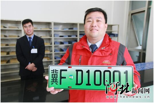 11月20日,保定市民康先生從車管所工作人員手中接過號碼為“冀FD10001”的號牌,成為河北省第一位擁有新能源汽車號牌的車主。作為全國新能源汽車號牌第一批推廣應(yīng)用城市,保定市今天正式啟用新能源車號牌,當(dāng)天共發(fā)放新能源車號牌20個。群眾可到車管所辦理新能源汽車的上照、換發(fā)業(yè)務(wù),現(xiàn)場領(lǐng)取新號牌。