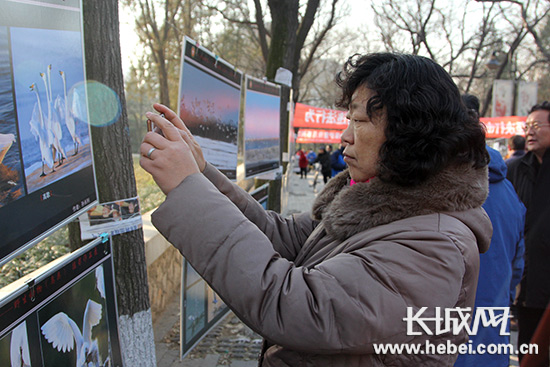 長(zhǎng)城網(wǎng)唐山11月29日訊(記者 邢。11月29日,唐山市野生動(dòng)物保護(hù)宣傳月系列活動(dòng)攝影展在唐山鳳凰山公園舉行。唐山市人民政府副市長(zhǎng)李曉軍、唐山市林業(yè)局局長(zhǎng)董秀峰等出席此次活動(dòng);顒(dòng)共展出200多幅展板1000多幅攝影作品。