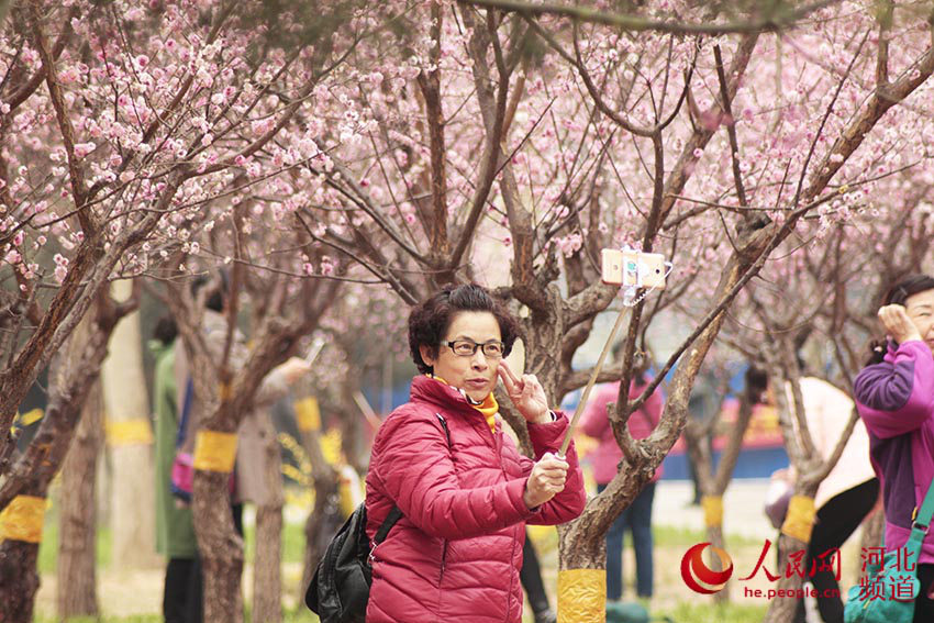 圖為石家莊市民駐足花海,自拍留念,嘟嘴賣(mài)萌相映成趣。陳正陽(yáng) 攝 -