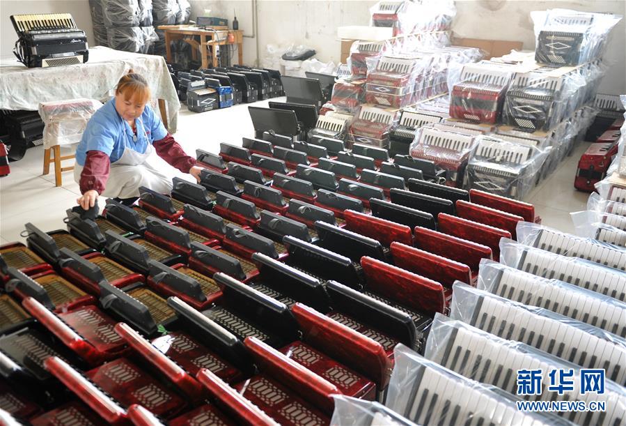 11月16日,工人在滄州市金獅樂器有限公司車間內(nèi)整理手風(fēng)琴。位于河北省滄縣紙房頭鄉(xiāng)境內(nèi)的滄州市金獅樂器有限公司由當(dāng)?shù)剞r(nóng)民創(chuàng)立于20世紀(jì)90年代,目前公司近200名員工絕大部分為當(dāng)?shù)剞r(nóng)民。該公司年產(chǎn)鍵盤式手風(fēng)琴、巴揚(yáng)手風(fēng)琴等類型手風(fēng)琴近萬臺,產(chǎn)品遠(yuǎn)銷美國、日本及歐洲等地。新華社記者 牟宇 攝 -