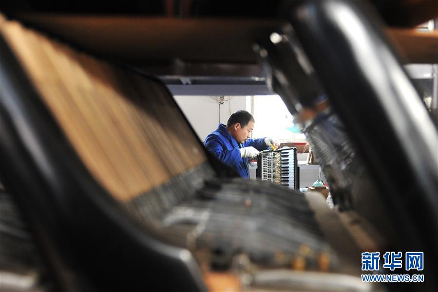 11月16日,工人在滄州市金獅樂器有限公司車間內(nèi)調(diào)試手風(fēng)琴。位于河北省滄縣紙房頭鄉(xiāng)境內(nèi)的滄州市金獅樂器有限公司由當(dāng)?shù)剞r(nóng)民創(chuàng)立于20世紀(jì)90年代,目前公司近200名員工絕大部分為當(dāng)?shù)剞r(nóng)民。該公司年產(chǎn)鍵盤式手風(fēng)琴、巴揚(yáng)手風(fēng)琴等類型手風(fēng)琴近萬臺,產(chǎn)品遠(yuǎn)銷美國、日本及歐洲等地。新華社記者 牟宇 攝 -