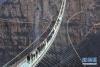 12月24日,游客行走在河北省平山縣紅崖谷景區(qū)懸跨式玻璃橋上。當(dāng)日,位于河北省平山縣紅崖谷景區(qū)的懸跨式玻璃橋正式開放。該橋全長(zhǎng)488米,寬4米,橋面與地面垂直落差約218米,可容納600人同時(shí)通過(guò)。新華社發(fā)(劉沛然 攝)