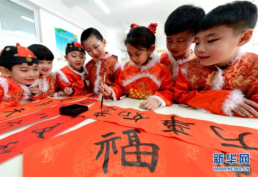 2月7日,河北省邯鄲市邯山區(qū)美的小學(xué)學(xué)生在寫福字。當(dāng)日,河北省邯鄲市邯山區(qū)美的小學(xué)舉辦“民俗體驗(yàn)過大年”活動(dòng),學(xué)生們手工制作中國結(jié)、寫福字、寫對聯(lián)等,感受傳統(tǒng)節(jié)日文化,喜迎新春佳節(jié)。新華社記者王曉攝 -