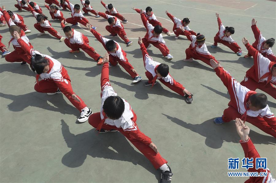 4月24日,三河市山下莊小學(xué)的學(xué)生在練習(xí)武術(shù)。自2017年起,河北省三河市山下莊小學(xué)將傳統(tǒng)武術(shù)引進(jìn)校園,開設(shè)武術(shù)課程,讓學(xué)生們在強(qiáng)身健體的同時(shí),傳承武術(shù)精神,弘揚(yáng)傳統(tǒng)文化。新華社記者魯鵬攝 -
