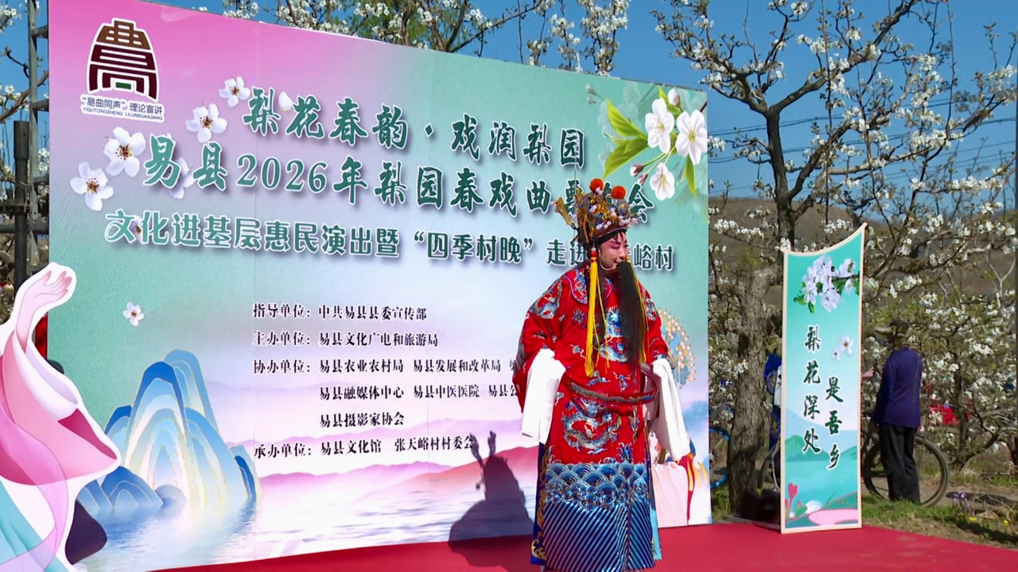4月10日,河北易縣梁格莊鎮(zhèn)張?zhí)煊迩М梨園內(nèi),繁花似雪、韻味悠長(zhǎng),“梨花春韻·戲潤(rùn)梨園”易縣2026年梨園春戲曲票友會(huì)在此精彩上演。