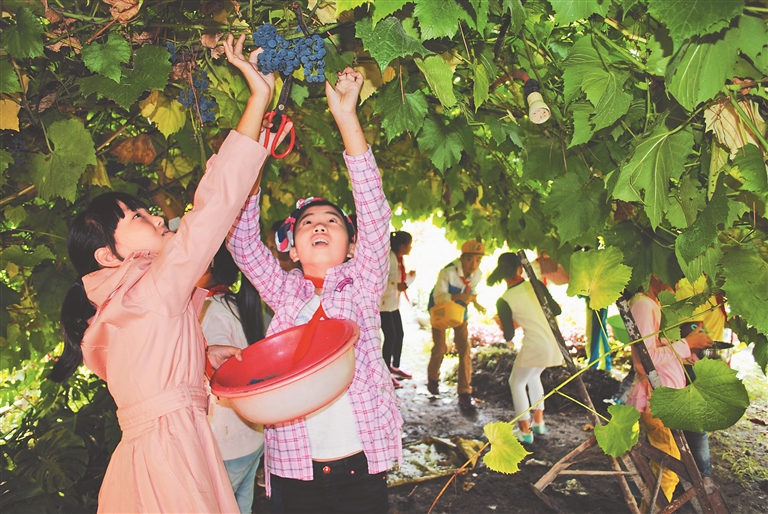 “孩子們都是第一次拿鐮刀,有的不敢拿,有的割破了手,還有的用力過(guò)猛,弄得人仰馬翻,衣服沾了水,鞋上有了泥。但當(dāng)他們看到親手種出紅彤彤的辣椒、綠油油的青菜,品嘗到葡萄的清甜時(shí),有的孩子當(dāng)場(chǎng)就流淚了,他們明白了種地要遵循自然規(guī)律,感受到汗水注入土地的艱辛,體驗(yàn)了合作的愉快,對(duì)未來(lái)滿懷期待!毙爝B君回憶說(shuō)。