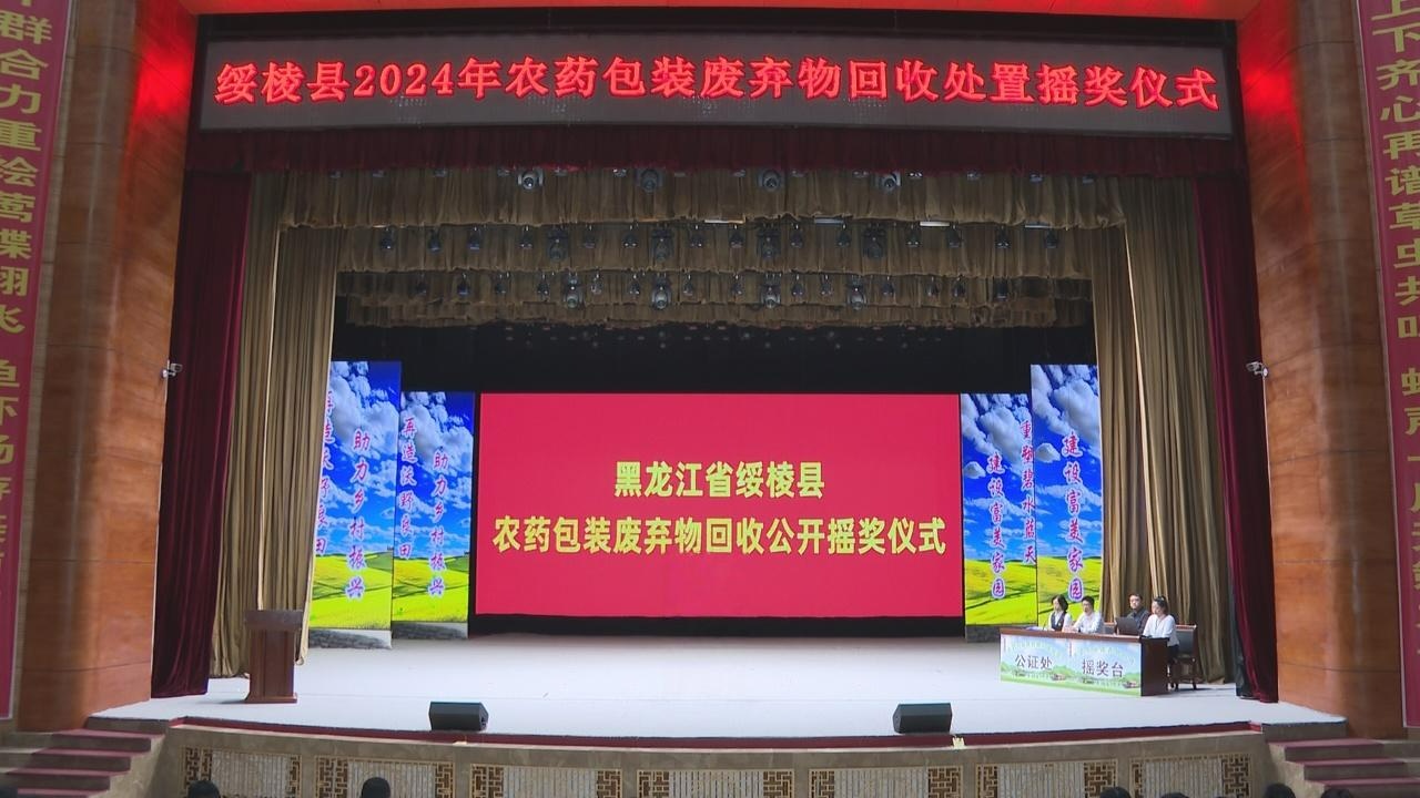 農(nóng)藥包裝廢棄物回收處置搖獎現(xiàn)場(綏棱縣委宣傳部供圖)