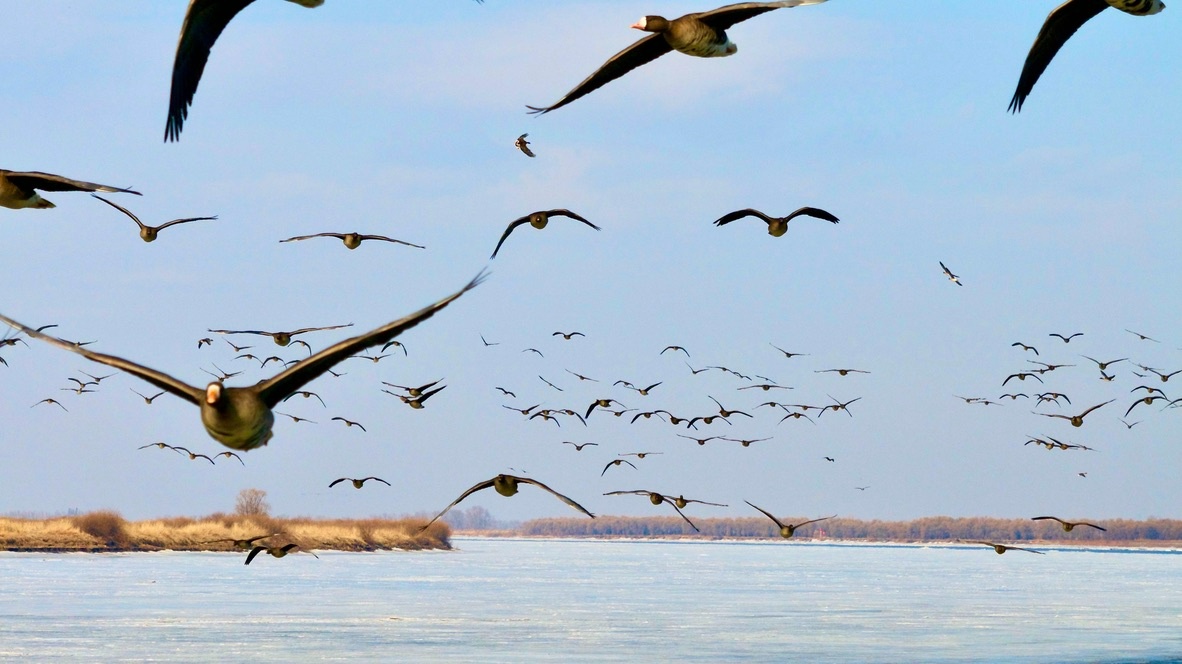 近日,在佳木斯市東風(fēng)區(qū)圳江村松花江畔,首批北歸候鳥已如約抵達(dá)。雁陣凌空、鶴舞淺灘,與半江融冰相映成景,勾勒出一幅生機(jī)盎然的生態(tài)畫卷。