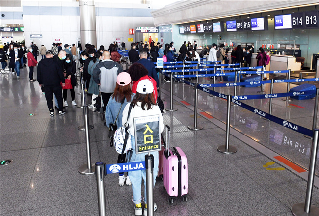 旅客排隊(duì)值機(jī)。黑龍江機(jī)場(chǎng)集團(tuán) 供圖