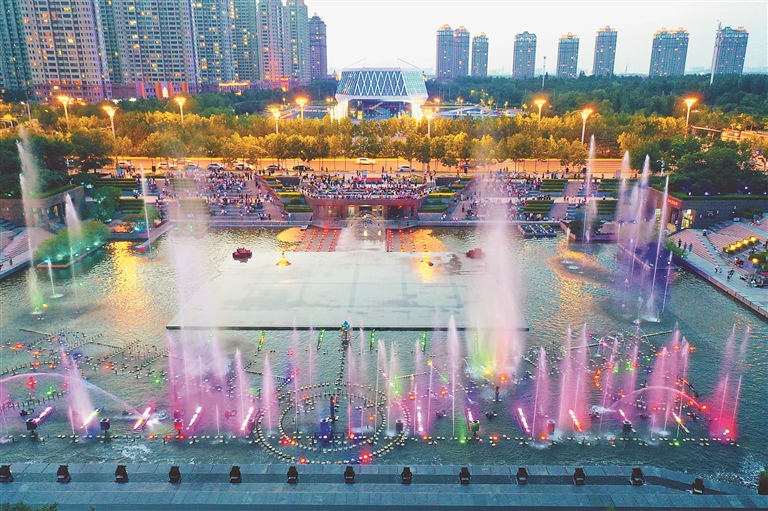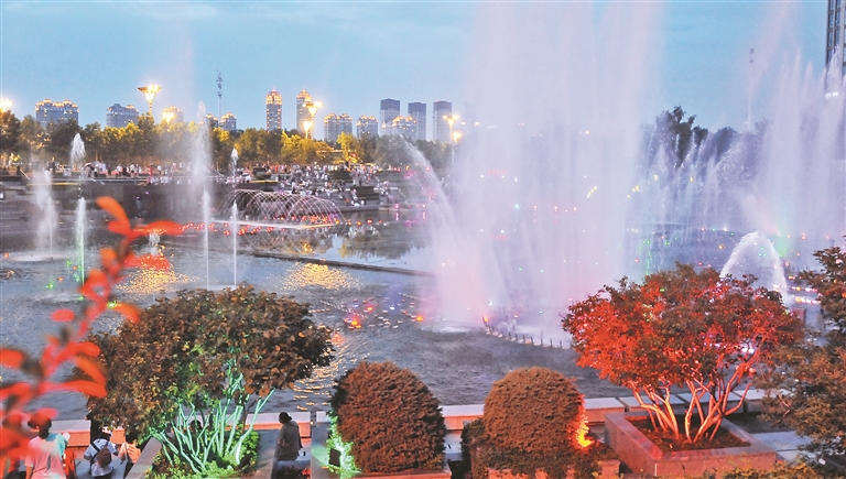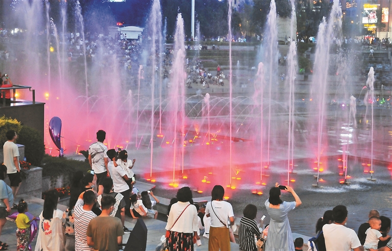 細碎的水花隨風四處飄散,為夏日里的人們送來一絲清涼。噴泉表演結(jié)束時,人們還久久不愿散去。