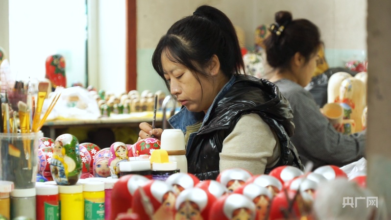 目前,一面坡總?cè)丝诩s1.5萬(wàn)人,其中近五分之一從事套娃相關(guān)工作。除了木工之外,畫(huà)工占了從業(yè)人口的大多數(shù)。這個(gè)看似枯燥的工種,為當(dāng)?shù)氐募彝D女提供了大量的就業(yè)崗位。