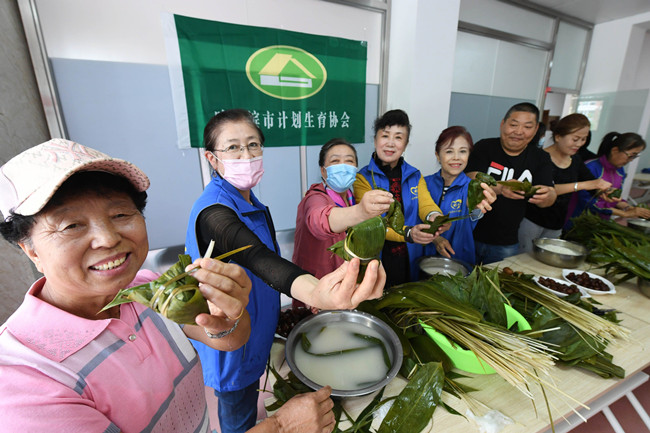 捐贈(zèng)儀式后,嘉賓與景江社區(qū)的工作者和計(jì)生特殊家庭一起包粽子、煮茶蛋、嘮家常,現(xiàn)場(chǎng)一片歡聲笑語。