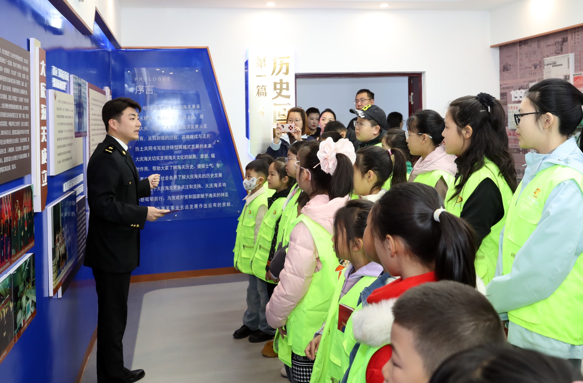 活動中,海關(guān)工作人員帶領(lǐng)小記者們走進(jìn)大慶海關(guān)關(guān)史館,通過館內(nèi)歷史實(shí)物、圖文資料、工作紀(jì)實(shí),全面介紹大慶海關(guān)發(fā)展歷程、核心職能與履職成效,生動講解海關(guān)堅(jiān)守國門、服務(wù)地方、守護(hù)安全的職責(zé)使命,讓同學(xué)們直觀感知海關(guān)工作內(nèi)涵,深化對國門安全重要性的認(rèn)知。
