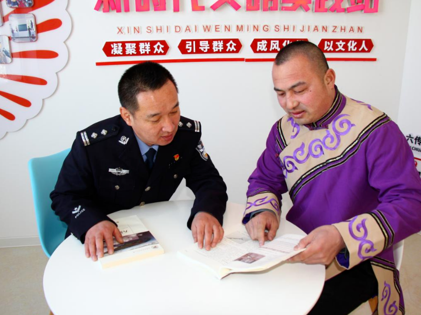 赫哲族黨員與聯(lián)村民警共同學(xué)習(xí)(同江市委宣傳部供圖)