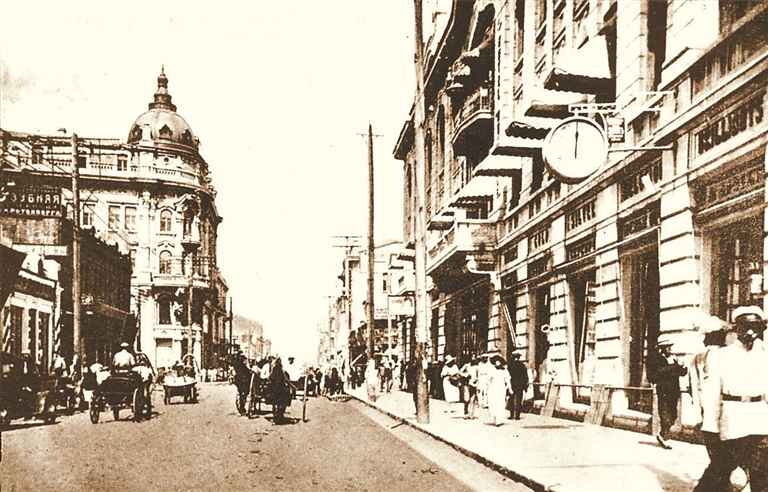 當(dāng)橫跨歐亞大陸的中東鐵路延伸到哈爾濱,松花江南岸的古河道渡口成為卸貨碼頭,運輸鐵路器材的馬車在沼澤和葦塘中碾出一條泥濘的土道向南延伸,成千上萬的筑路工人在這條土路兩側(cè)居住。1900年,這條土路有了它的名字——中國大街,1925年更名為中央大街。