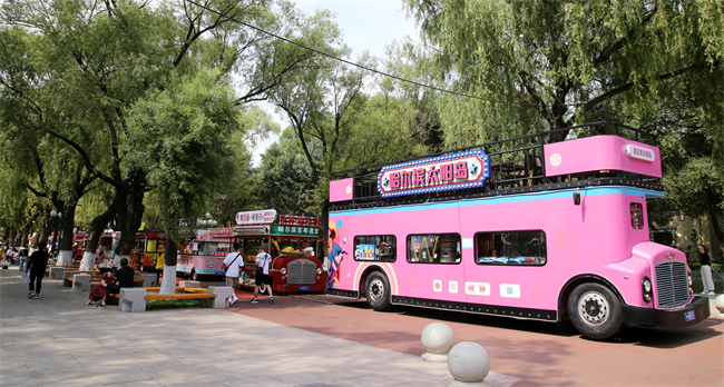 啤酒節(jié)現(xiàn)場造型各異的小吃車。哈爾濱市新聞辦 供圖