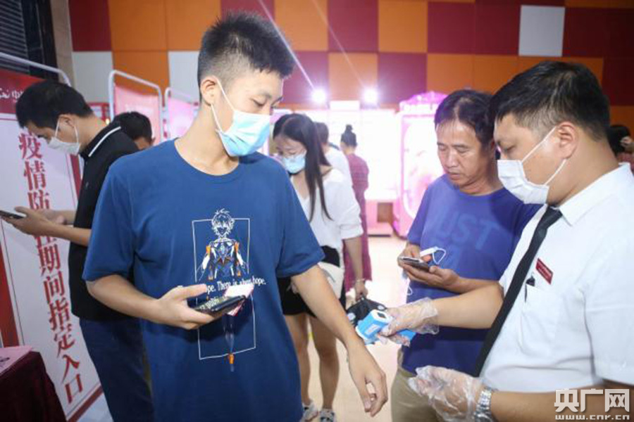 在點(diǎn)映現(xiàn)場(chǎng),觀眾們帶好口罩有序測(cè)溫入場(chǎng),雖然觀影人數(shù)較多,但影院秩序井然。