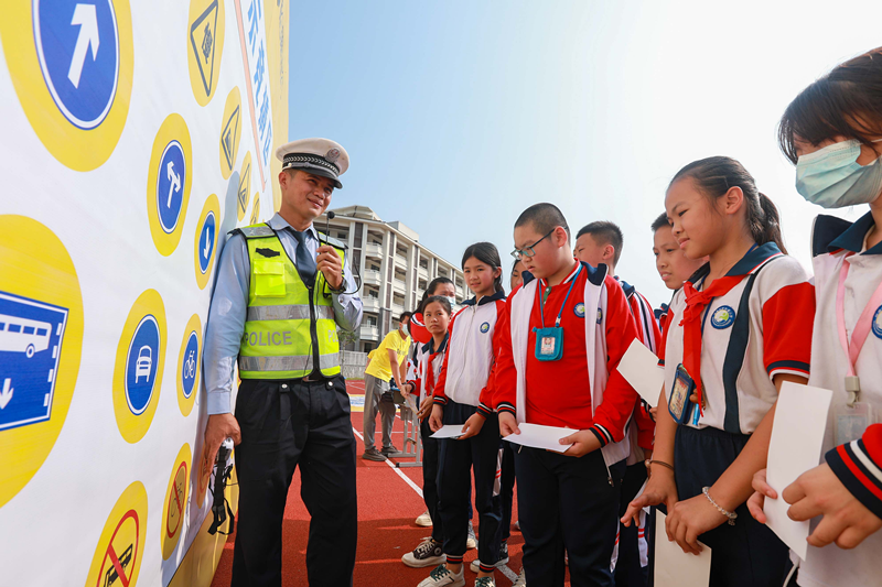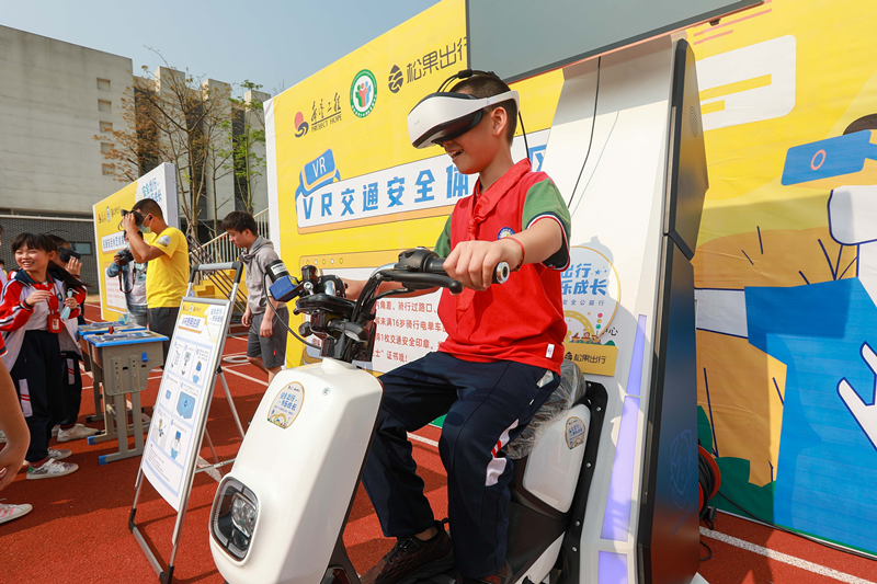 現(xiàn)場設(shè)置了多項(xiàng)互動(dòng)體驗(yàn)區(qū),通過VR交通出行安全體驗(yàn)區(qū)、交通標(biāo)志競猜區(qū)、模擬交通體驗(yàn)區(qū)、交通安全小藝術(shù)家涂鴉區(qū)等環(huán)節(jié)的體驗(yàn),讓學(xué)生們對交通安全知識(shí)有更深刻的了解。
