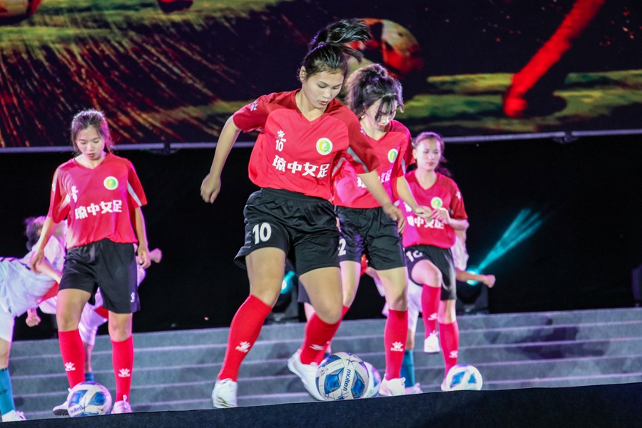 4月13日晚,瓊中女足隊(duì)員亮相瓊中“三月三”開(kāi)幕式主題文藝晚會(huì)(央廣網(wǎng)發(fā) 瓊中縣委宣傳部供圖)